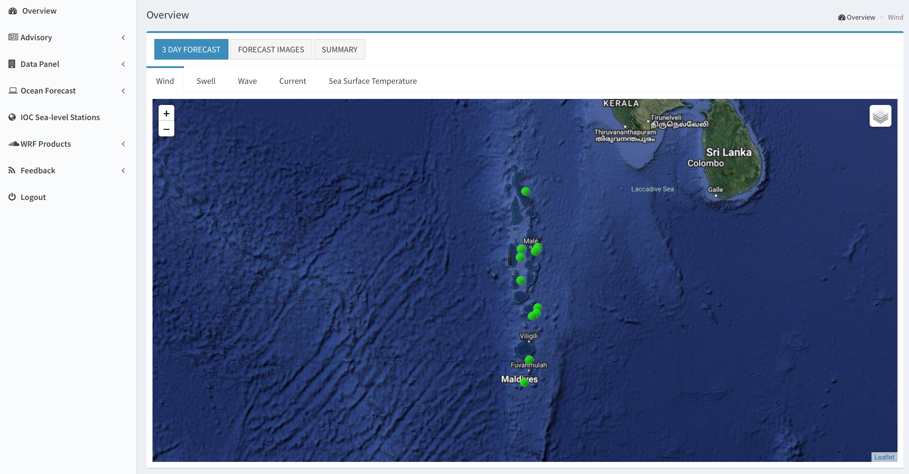 Existing data and updated local bathymetric data are integrated by INCOIS into its forecasting system to generate desired products for a range of users – locally and regionally – in each country. These products include 3-day forecasts of wave and swell height, direction, and period, sea surface current and temperature, and wind speed from INCOIS’ Indian Ocean Forecast System (INDOFOS).
