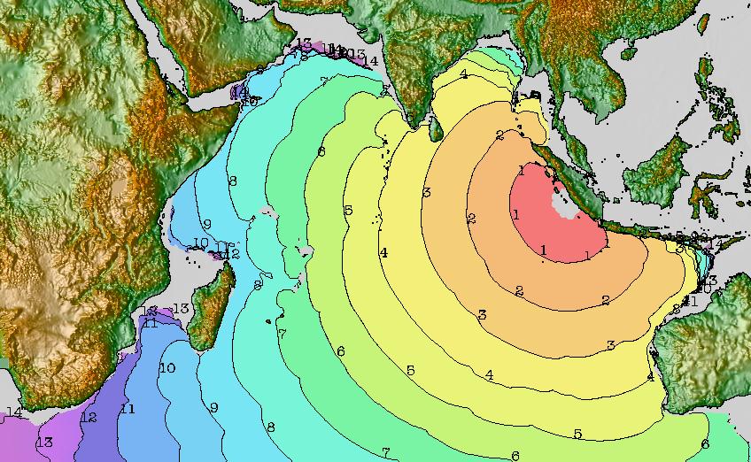 Tsunami travel time map