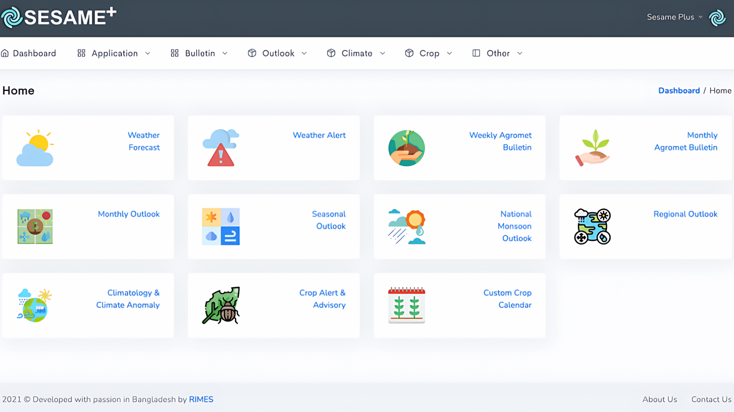 The prototype of SESAME for Punjab Agriculture Department (PAD), Pakistan was completed by the RIMES Systems Development Team in 2021. The system was enhanced for Myanmar and customized for Nepal to provide seasonal forecast-based advisories. Furthermore, capabilities for meteorological services to include regular seasonal forecast were built into the system, along with a mobile application for improved call center service, my crop, and voice messaging services.